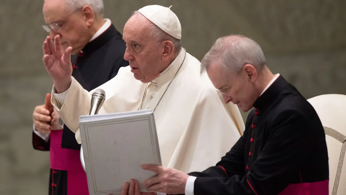 Francisco volvió a referirse a la que llamó "vergonzosa" guerra en Ucrania, provocada por la invasión en Rusia, y dijo que tiene origen en "una cultura del poder, entendida como dominación y abuso".