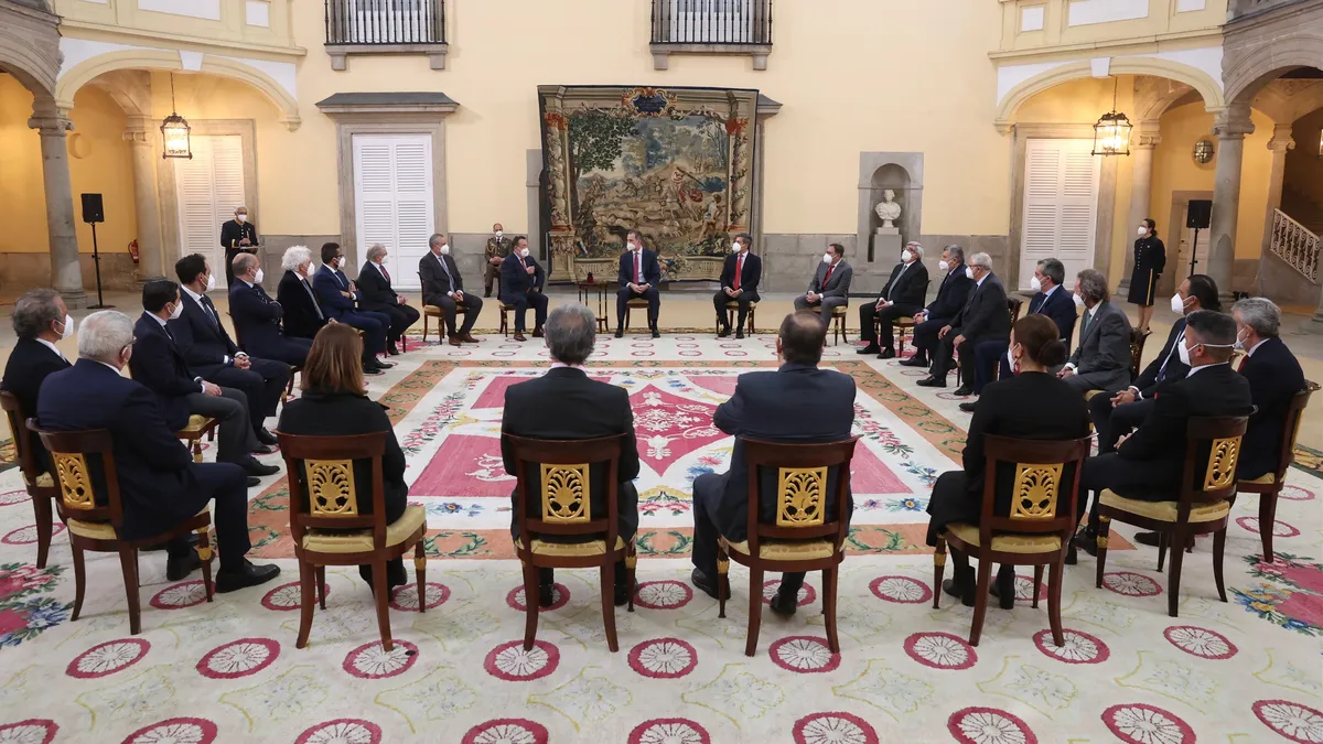 Madrid, 24 mar (EFE).- Felipe VI se ha reunido este jueves con responsables de la Confederación Empresarial de Hostelería de España (CEHE), quienes le han expuesto la situación del sector ante el actual contexto económico afectado por la pandemia, el encarecimiento de la luz y la falta de suministros.