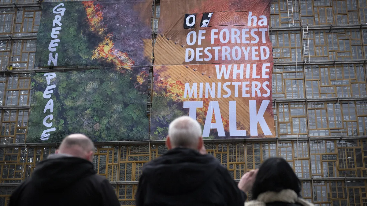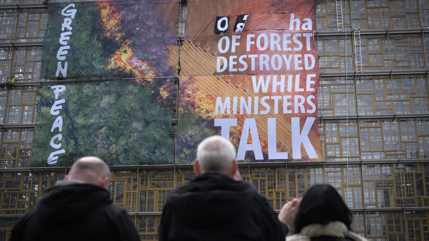 Greenpeace clama contra la deforestación durante una reunión de ministros de la UE