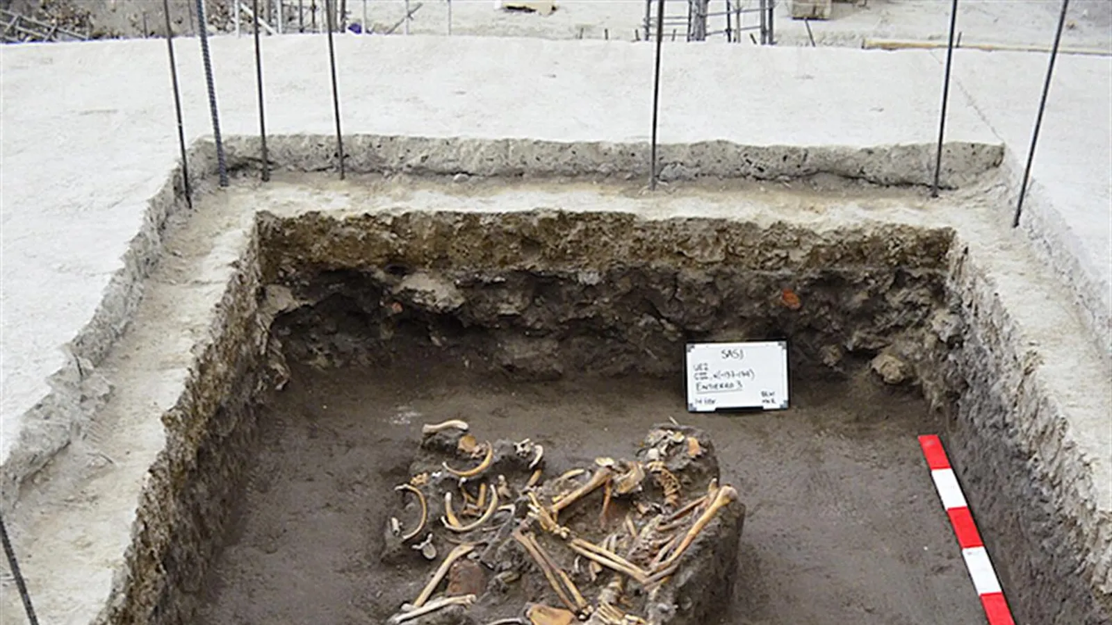 Las autoridades han explicado que pudieron deducir que los entierros humanos están relacionados con esa época debido a que uno de los hallazgos es el de un individuo masculino que conserva un agujero de bala en el hueso iliaco izquierdo.