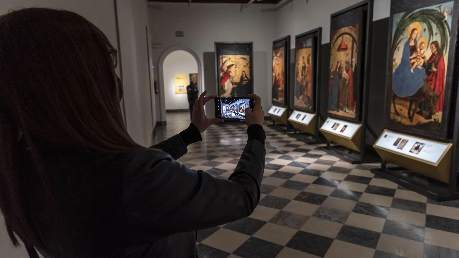 La consejera ha destacado "la trayectoria cinematográfica" de parte de las obras que se exhiben en esta muestra, concretamente de las ocho tablas renacentistas que fueron descubiertas durante la restauración del retablo de la Iglesia de la Santísima Trinidad de Alcaraz (Albacete), que han permanecido varios siglos ocultas a la contemplación, escondidas bajo varias capas de pintura.